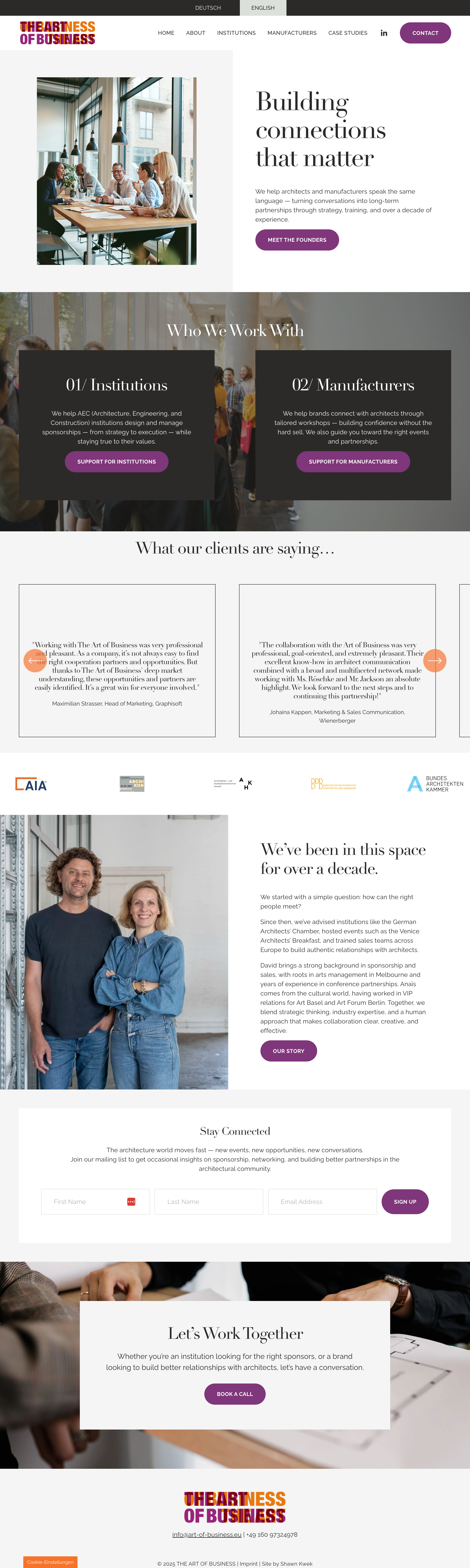 Both projects were delivered with focus and structure, keeping the process smooth from start to finish. Art of Business now has a website that supports its growth at every stage, from launch to repositioning.