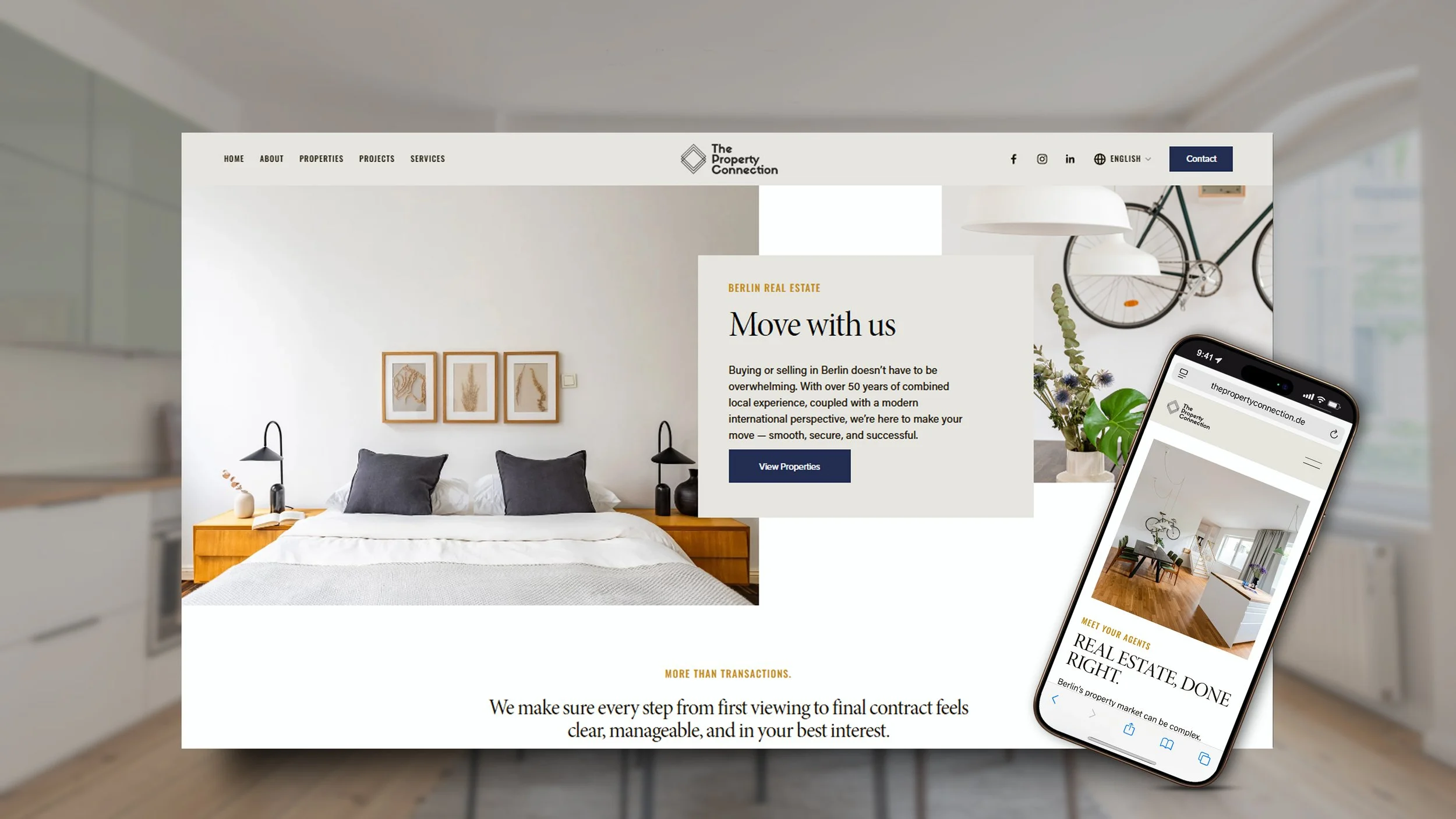 The new brand and website now communicate the quality, clarity, and expertise that define The Property Connection. Clients can understand their value quickly, navigate services with ease, and engage with the company through focused and trustworthy messaging. The updated identity and digital presence strengthened their position in the market and supported their growth as a respected real estate advisory.
